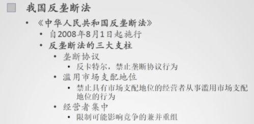 3. 法律法规完善:《中国反垄断法》的颁布实施,为反垄断执法提供了法律依据。反垄断局的成立,有助于更好地执行这一法律,确保法律的有效实施。
